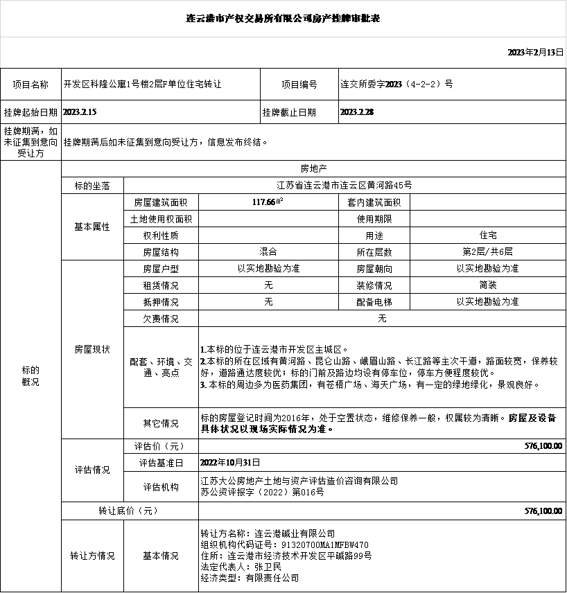 開發(fā)區(qū)科隆公寓1號樓2層F單位住宅轉讓