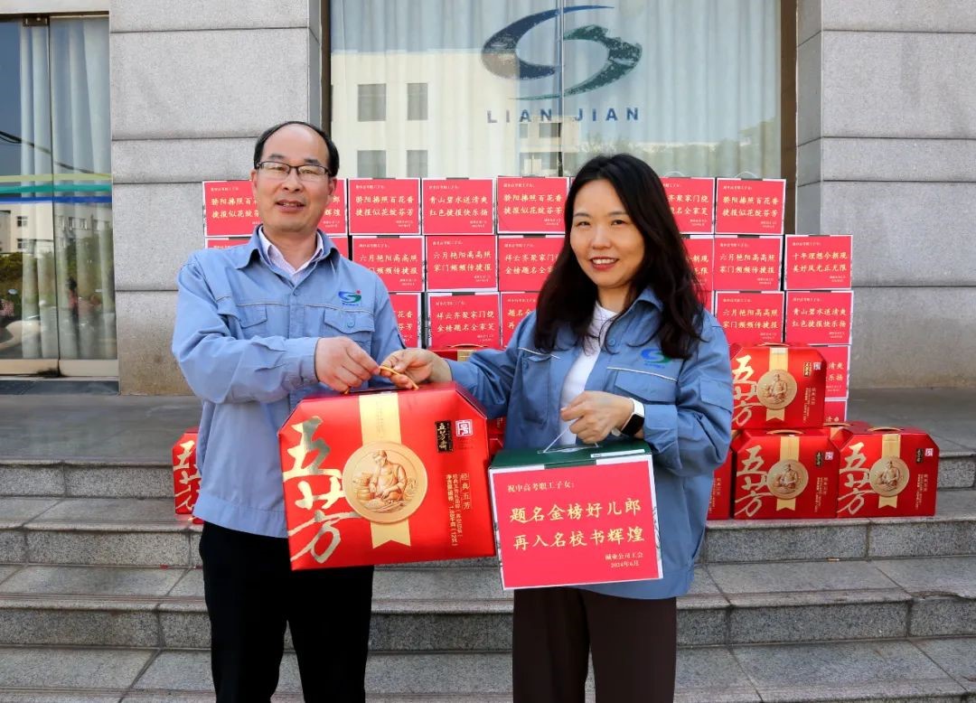 一年一度的中、高考即將到來,今年,公司將有近50名職工子女迎戰中、高考。為助力中高考,給考生加油打氣,6月3日,公司工會組織開展慰問活動,為家有中高考學生的職工送上“娘家人”的關懷和祝福。工會準備了兩份寄意深厚的考前慰問品,一份是寓意“高中榜首”的“粽子”,一份為牛奶,貼上了工會精選的“金榜題名”勵志古詩詞祝福語,為中高考職工家庭加油鼓勁。