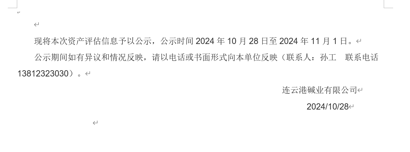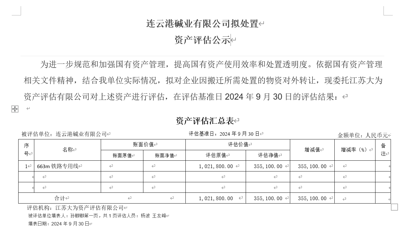 連云港堿業(yè)有限公司鐵路專用線資產(chǎn)評估公示